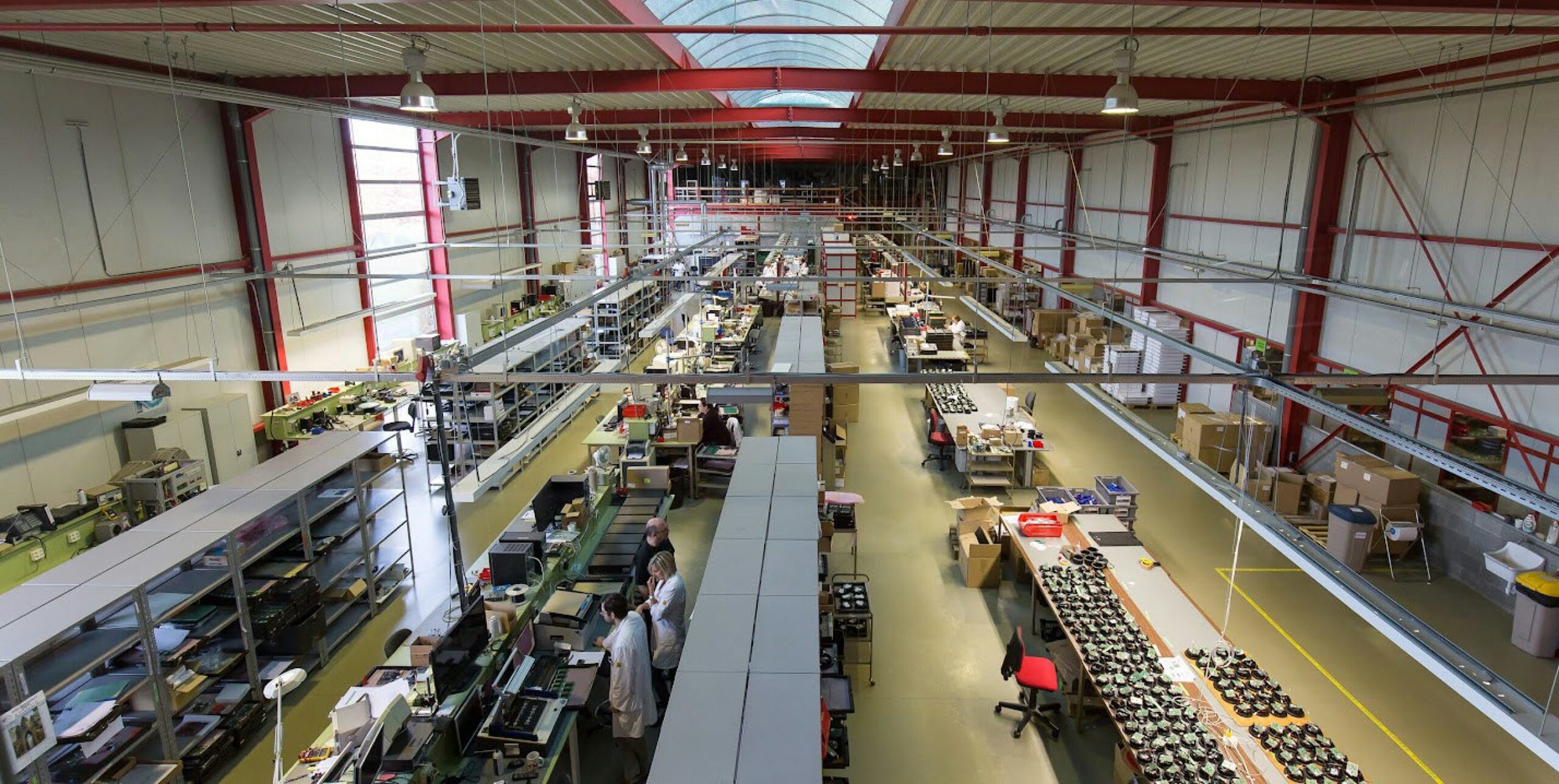 Het volledig ingerichte atelier heeft een totale oppervlakte van circa 2.700 m² en is ontworpen voor maximale efficiëntie en veelzijdigheid. Het gelijkvloers omvat diverse werkzones, een testlabo, mechanische werkplaats, hotroom, geïntegreerde kantoorruimtes, magazijn en een praktische laad- en loszone. Alle noodzakelijke voorzieningen, waaronder EHBO-ruimte en sanitair, zijn aanwezig waardoor het gebouw onmiddellijk operationeel is. Op de eerste verdieping bevinden zich een polyvalente ruimte, refter met keuken en afzonderlijke kleedkamers voor dames en heren. Daarnaast beschikt het atelier over een functionele kelder met bergruimte, archief en technische lokalen.