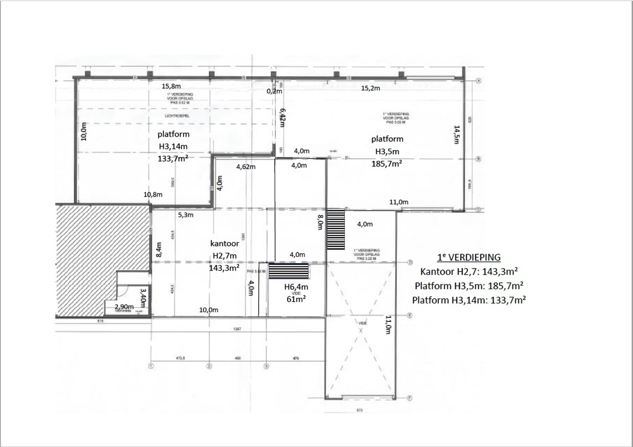 De magazijnen variëren van vrije hoogte, met name 2,75m, 4,60m en 6,7m.