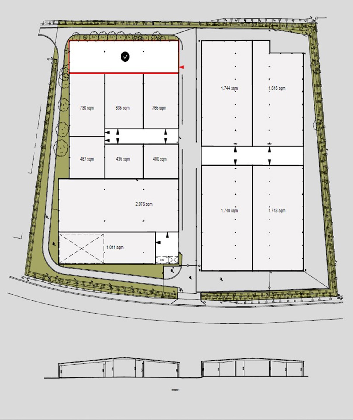- Halfoverdekte loods: ca. 7.496 m²