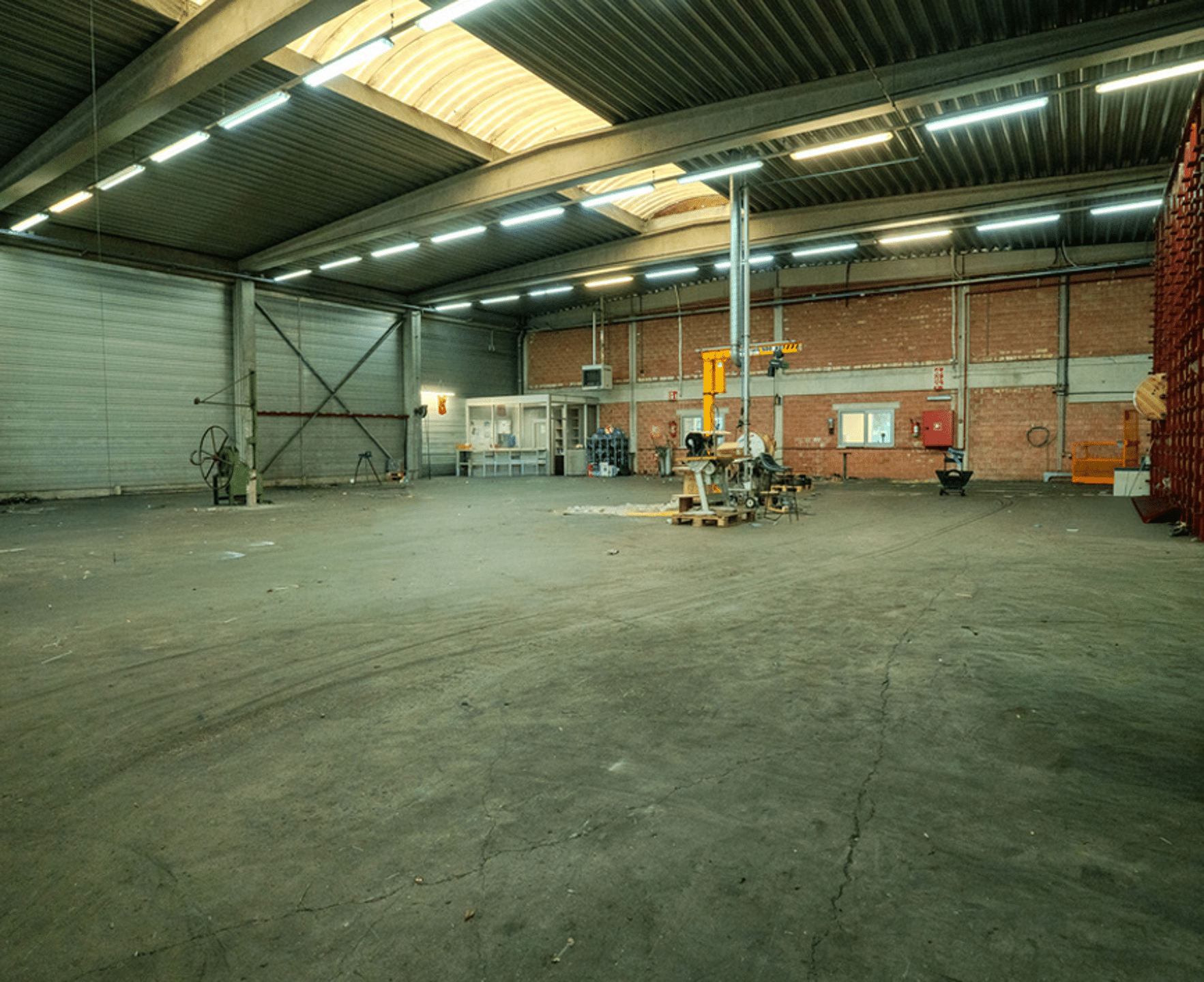 Het achterste magazijn is opgetrokken uit een staalstructuur en heeft een vrije hoogte van 6,2m. De vloer heeft hier een draagkracht van 5ton/m².