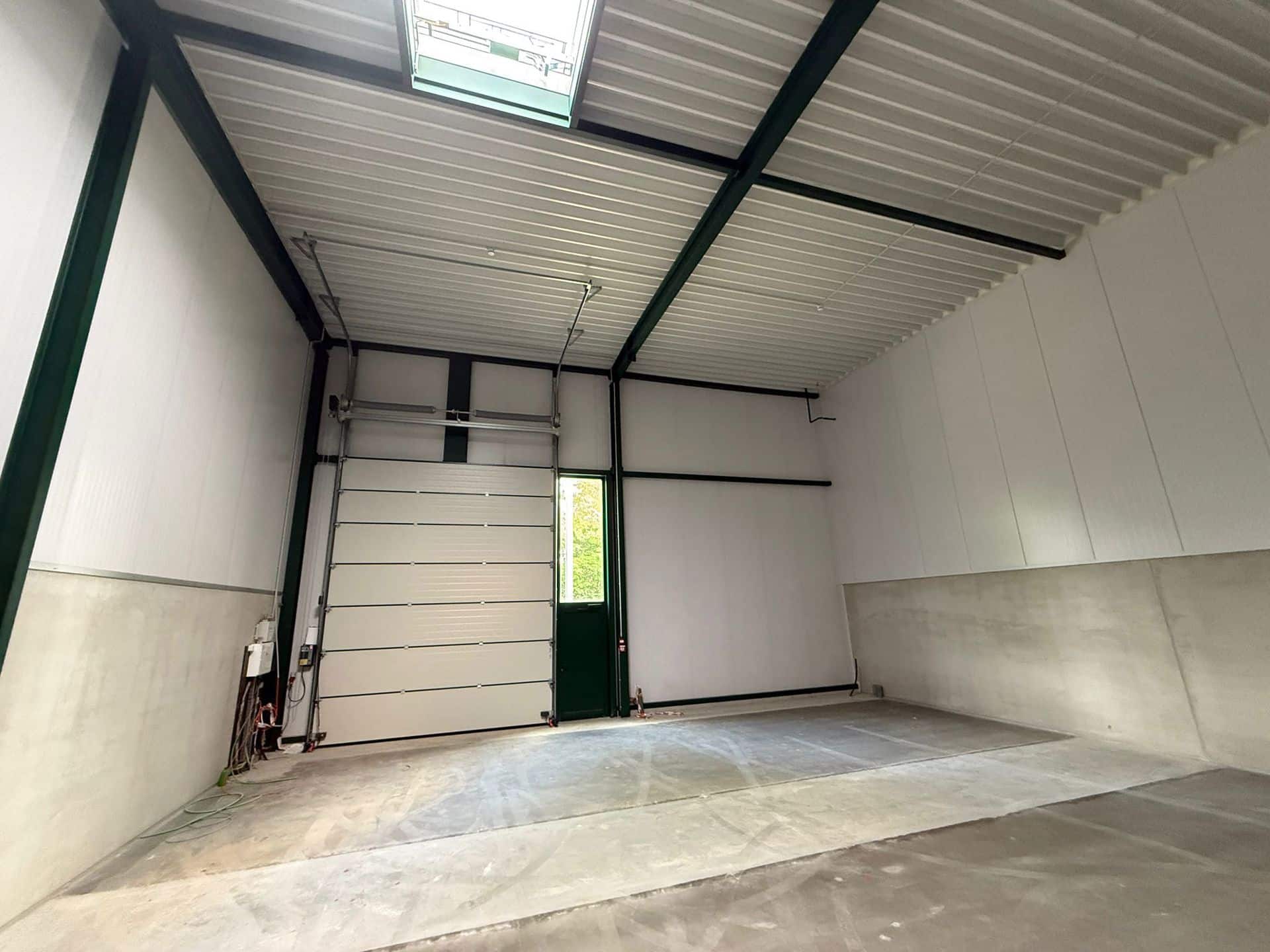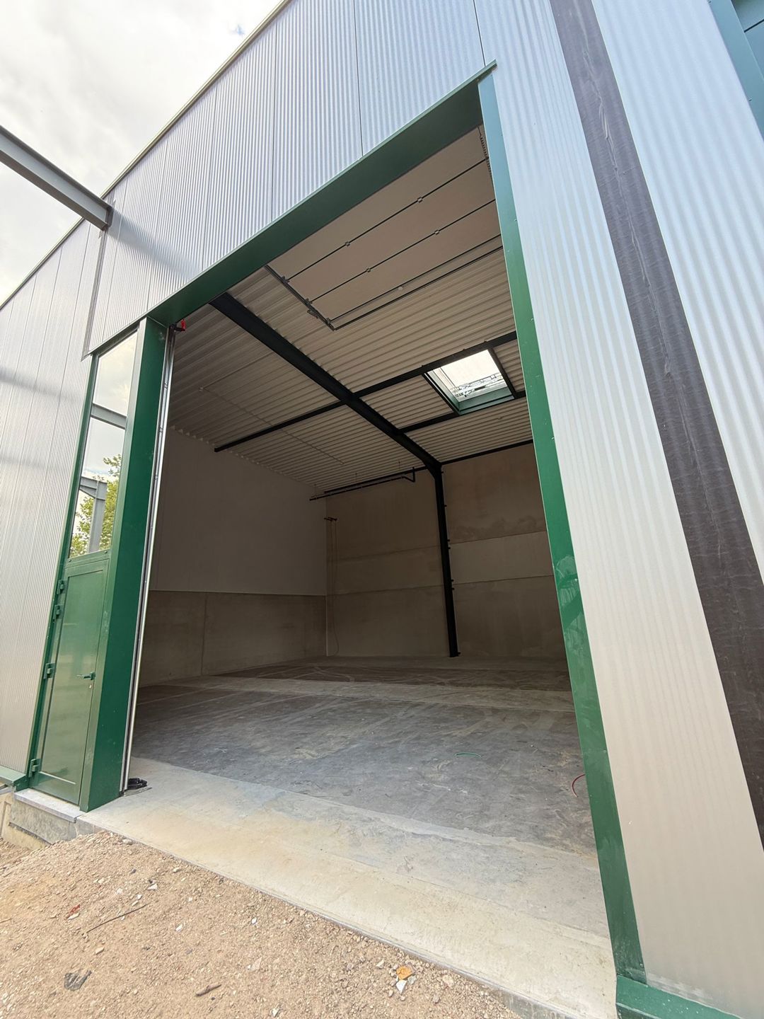 Het magazijn is voorzien van een automatische sectionale poort en geniet een verhoogd raamtype dat het mogelijk maakt een kantoor op verdieping (mezzanine) te bouwen.