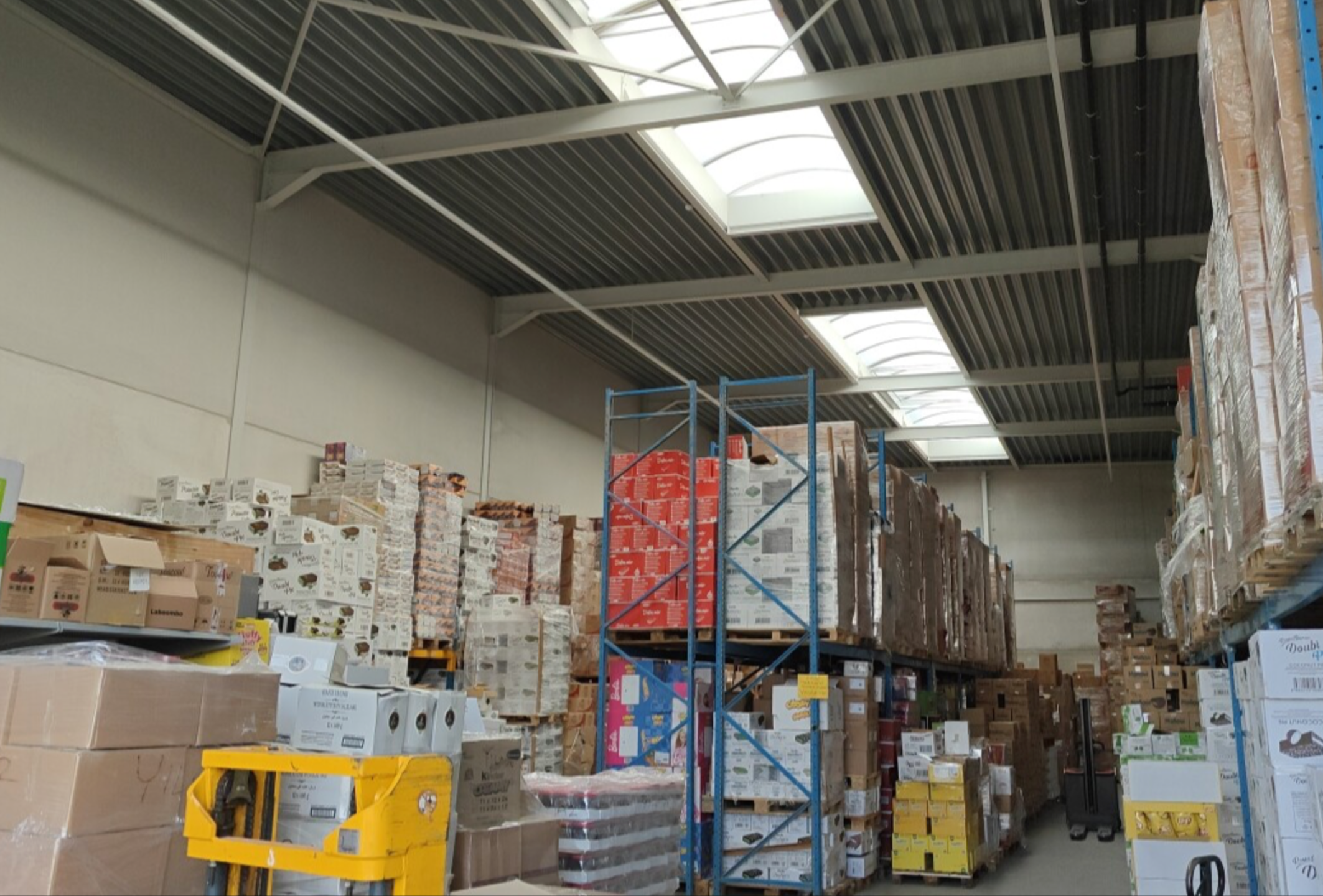De magazijnunit is uitgerust met een sectionaalpoort en een aparte toegangsdeur. Dankzij de raampartij naast de sectionaalpoort en de