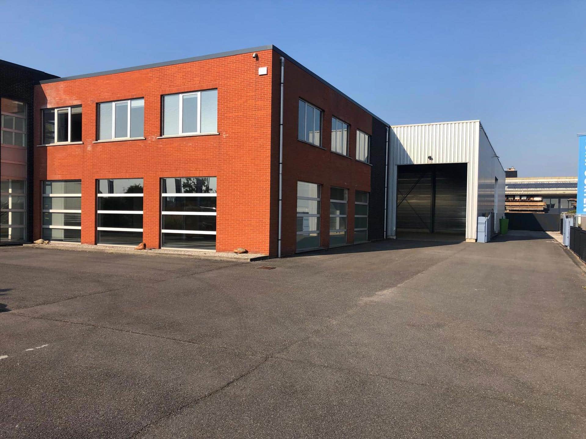Zeer goed gelegen magazijn (ca. 300m²) met kantoorruimte / showroom (samen 350m²) met zicht op de A12 in Willebroek.
