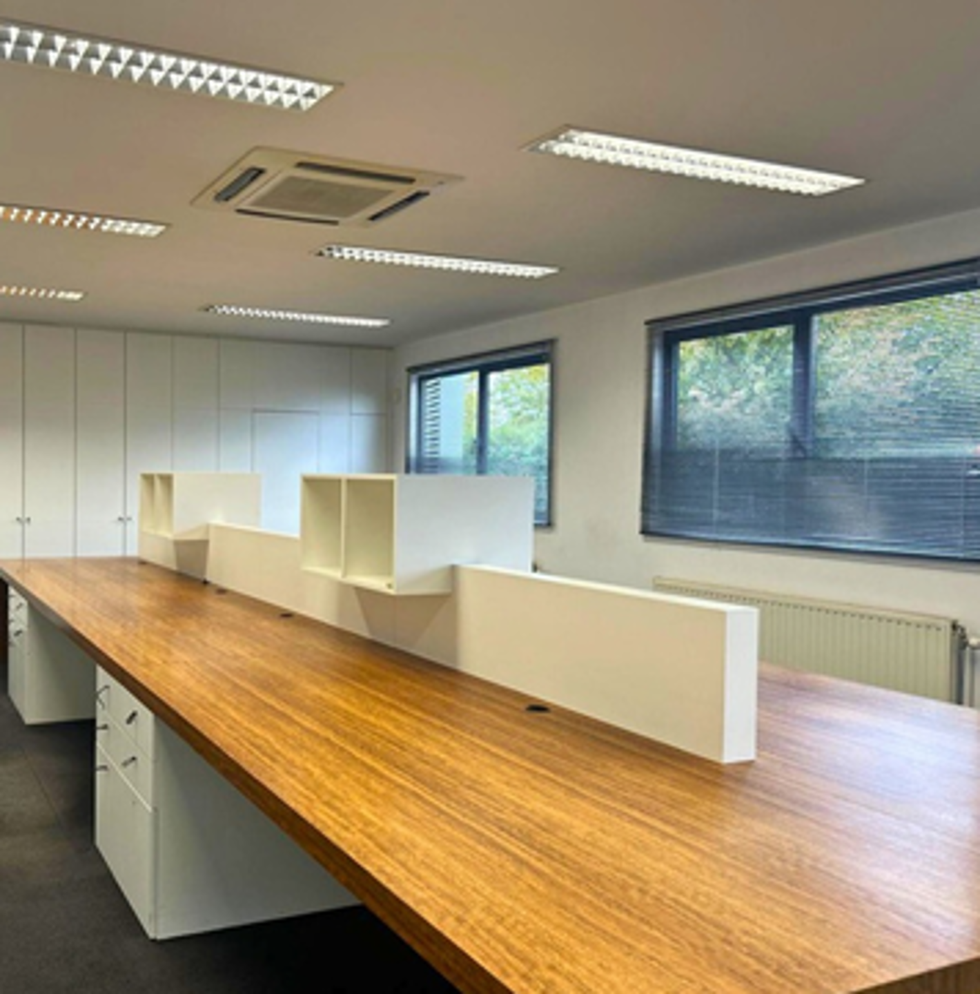 De burelen inclusief de showroom hebben een degelijke afwerking en zijn uitgerust met installaties waaronder HVAC, elektriciteit, internet en een alamsysteem.