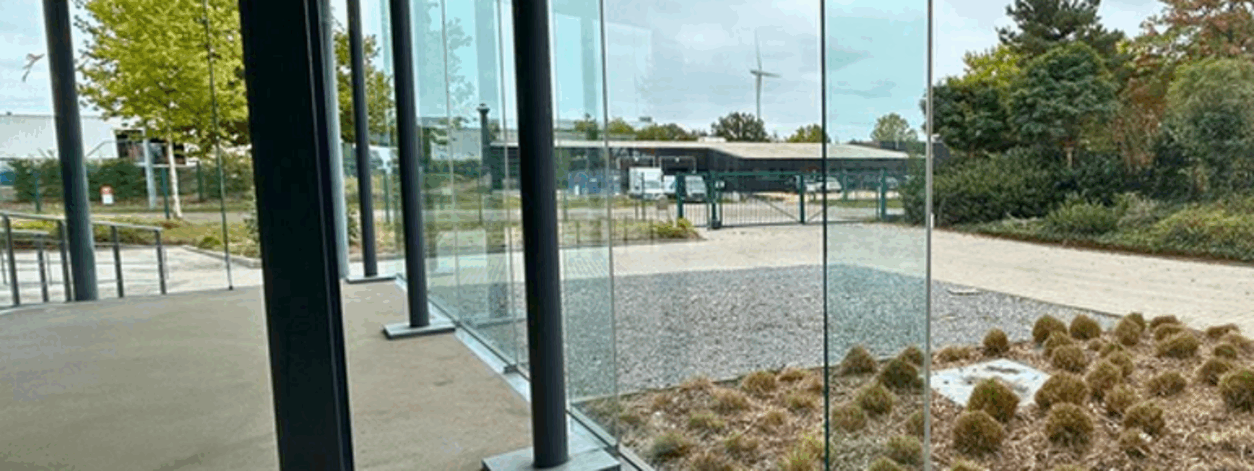 De moderne burelen met showroom hebben een oppervlakte van 330m² en een hoogte van 3,75m. Het is opgetrokken uit een houten skelet dat goed geïsolleerd is. Daarnaast is het afgewerkt met aluminium schrijnwerk.
