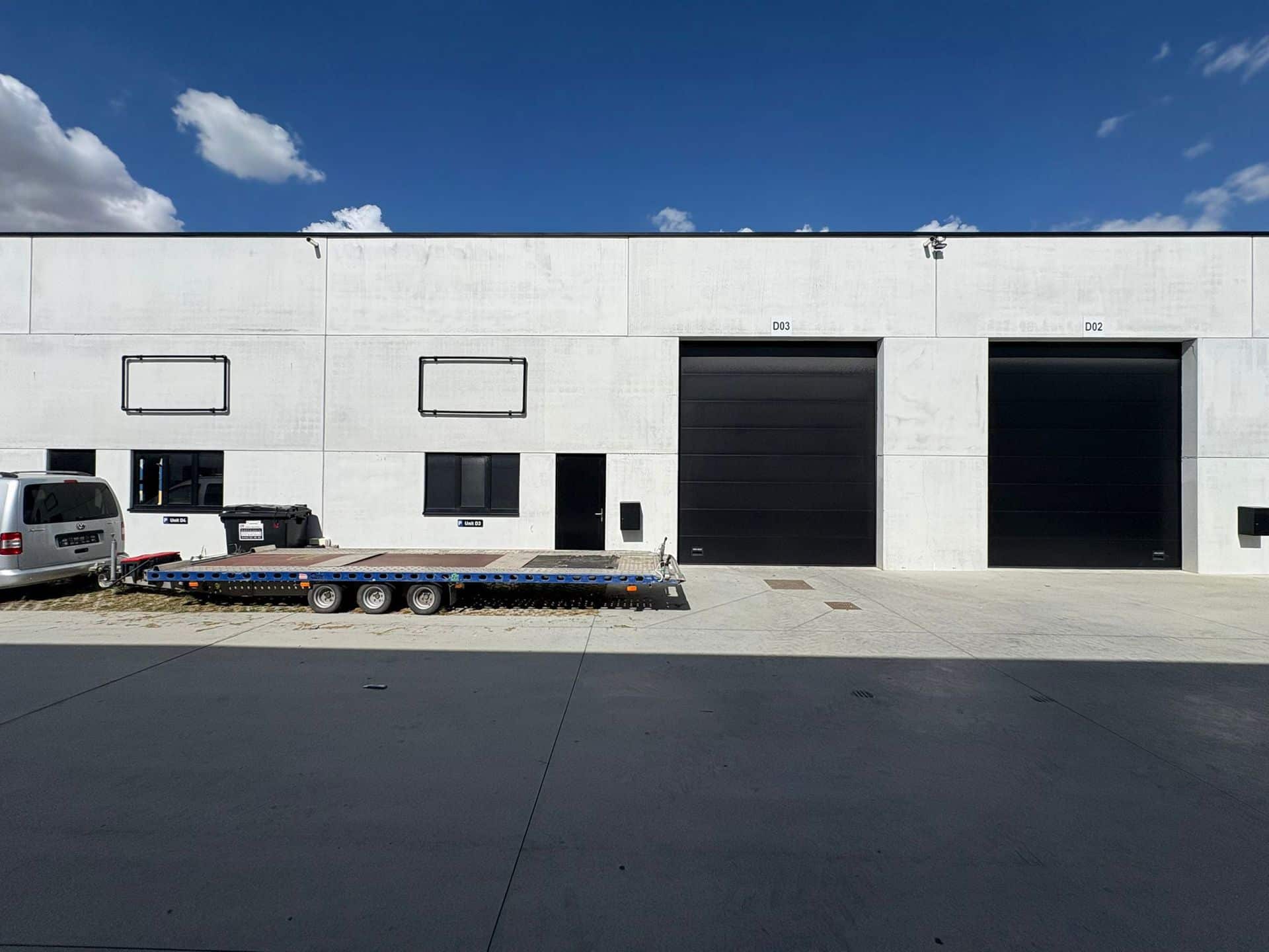 De loods is voorzien van een praktische sectionale poort (4m breed x 4,5m hoog) met een aparte loopdeur, een raampartij die zorgt voor natuurlijke lichtinval, een lichtstraat en een duurzame polybetonvloer. Dankzij de veelzijdigheid van de ruimte zijn tal van activiteiten mogelijk, zoals opslag en productie.